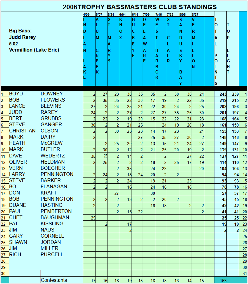 2006 Club Tournament Archives 04/09 Indian Lake 06/07 Alum Creek 05/21 St Marys 06/04 Knox Lake 06/11 Buckeye Lake 07/09 Delaware 07/16 West Harbor 07/23 Detroit River 08/06 Sandusky Bay 08/27 Vermillion Share this: Share on Facebook (Opens in new window) Facebook Print (Opens in new window) Print Like Loading...