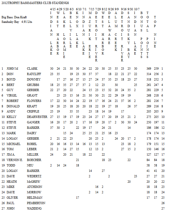 2012 Club Tournament Archives 04/15 Indian Lake 04/29 Lake Erie 05/20 Loramie 06/03 Belleville 06/10 Knox Lake 07/01 Indian Lake 07/15 Lake Erie 07/29 Detroit River 08/11 & 8/12 Lake Erie 08/26 Delaware 09/09 Alum Creek 09/16 Detroit River 09/30 Sandusky Bay 10/07 Indian Lake Share this: Click to share on Facebook (Opens in new window) Facebook Click to print (Opens in new window) Print Like Loading...