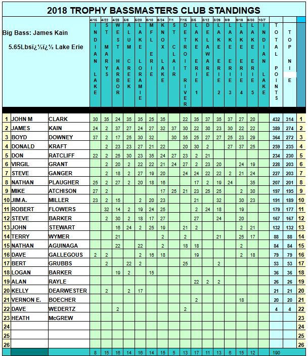 2018 Club Tournament Archives 04/15 Indian Lake 04/22 St Marys 04/28 Lake Erie (West Harbor) 05/06 Alum Creek 05/20 Loramie 06/10 Lake Erie MLF 06/24 Knox Lake 07/01 Lake St Clair 07/15 Detroit River 08/05 Lake Erie 08/12 Delaware 08/26 Lake Erie 09/09 Lake Erie 09/16 Lake Erie 09/30 Lake Erie 10/07 Indian Lake Share this: Click to share on Facebook (Opens in new window) Facebook Click to print (Opens in new window) Print Like Loading...