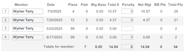 Terry was able to fish 4 tournaments this year.